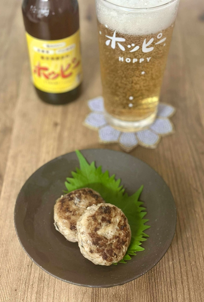 ごぼうを小さめのささがきにし、さんまの身とみそと一緒にたたき、2等分し整形したら、フライパンを熱し、ごま油を加えてなじませ、両面、弱火でこんがり焼いて火を通し、大葉とともに器に盛り付ける。
