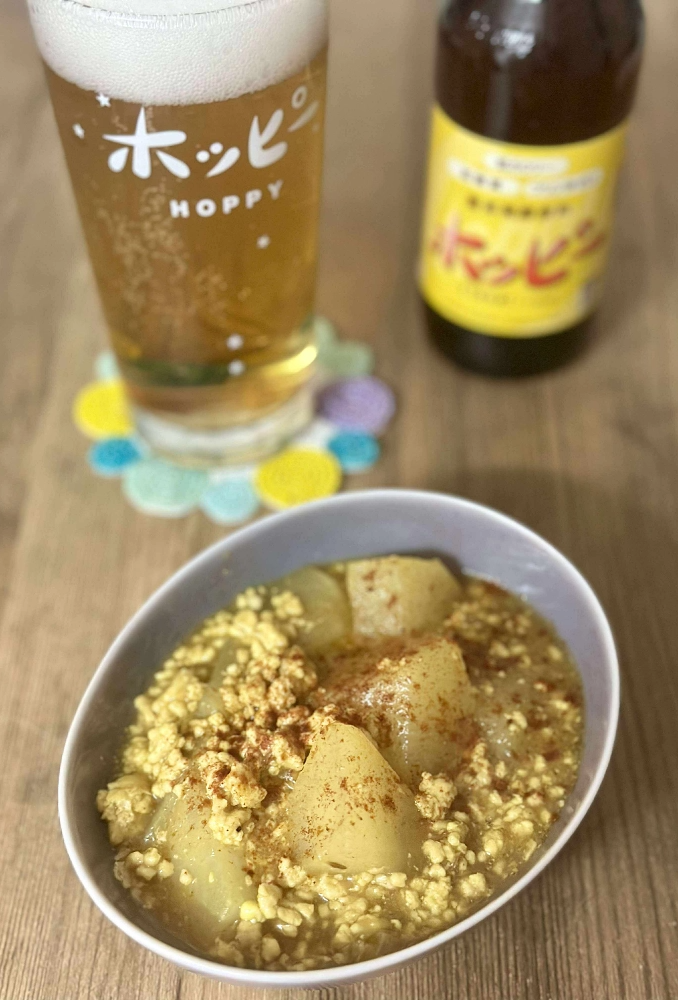 鍋にAを入れて弱火にかけ、カレー粉の香りが立ってきたら1とBを入れて弱火から中火で10分ほど煮て、白だしで味を整え、いったん火を止め、30分ほど置いて味を落ち着かせる。