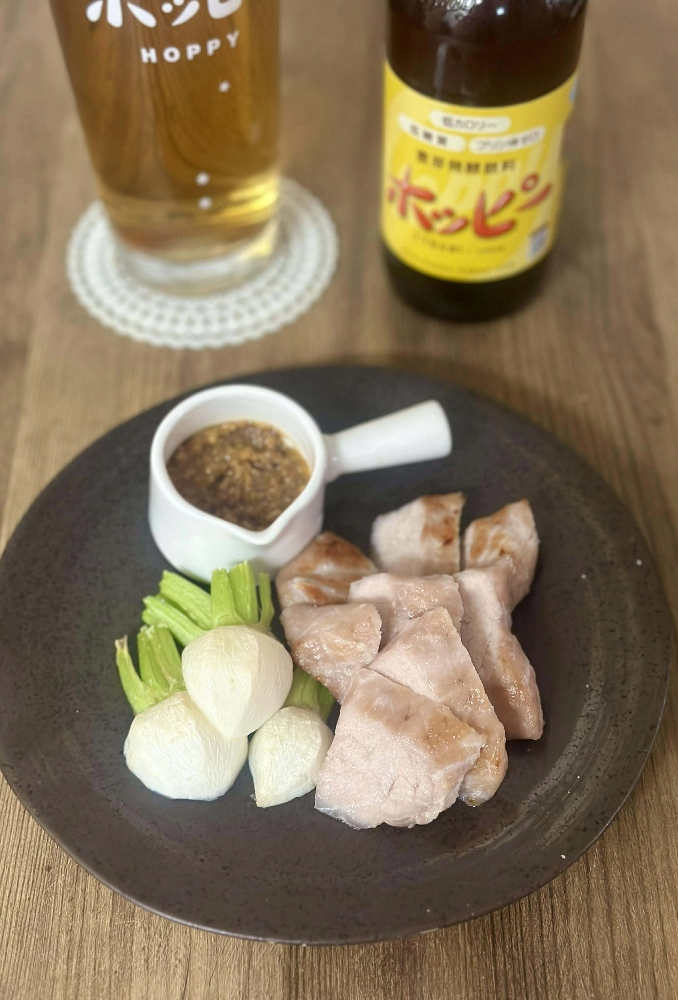 2の豚肉を食べやすい大きに切って、かぶとともに器に盛り付け、合わせておいたAのみそマスタードを添える。