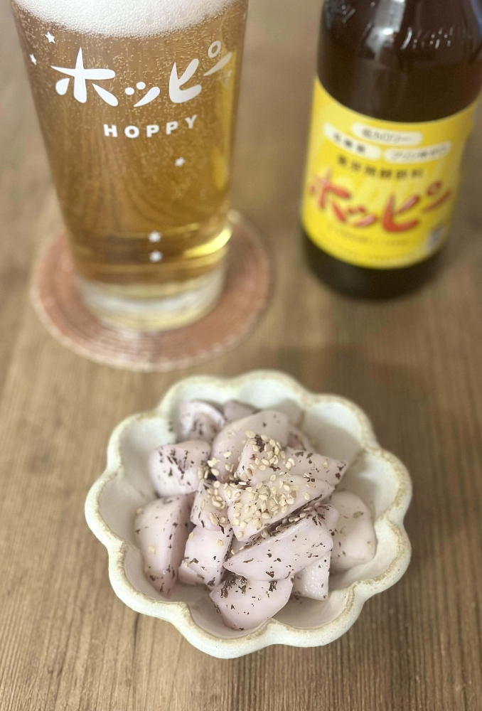 皮をむき、食べやすい大きさに切ったかぶとゆかりを合わせ、冷蔵庫で半日ほど置いて味をなじませる。器に盛り付け、ごまをトッピング。